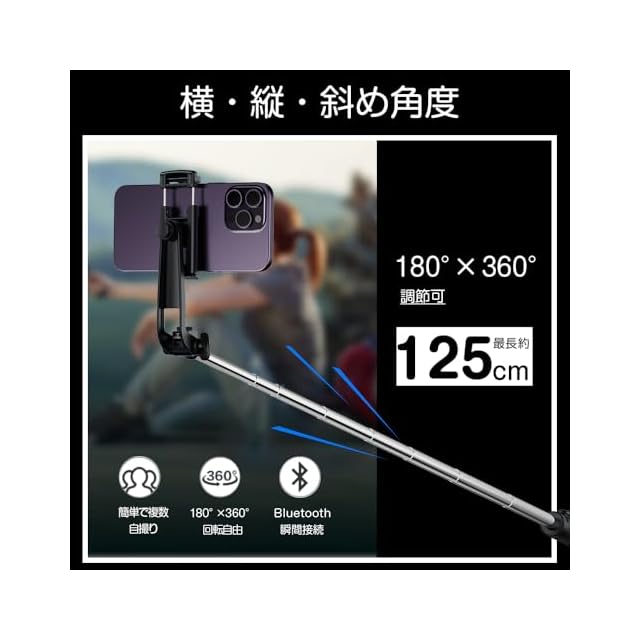 【自撮り棒 軽量&セルカ棒 iphone対応で360°自由撮影】 じどり棒 iphone や セルカ棒 iphone としても人気のこのモデルは、 自撮り棒 軽量 で長時間撮影も疲れにくい。360°回転可能なヘッドと折りたたみ式デザインで、 スマホ じどり棒 としての使い勝手も抜群。 自撮り棒 で検索されることの多い高性能モデルで、 自撮り や セルフィー 、風景撮影にも対応。 自撮り スタンド 機能付きで、旅行、登山、イベント、日常の記録まで幅広くカバーする万能な スマホ 自撮り棒 です。