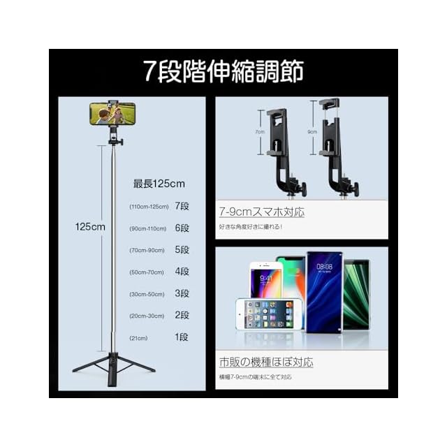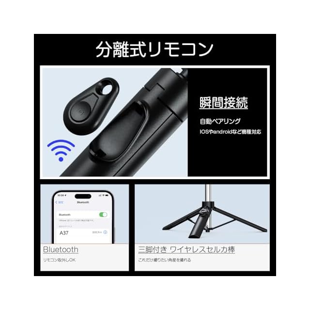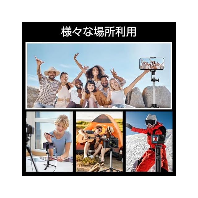 【Bluetooth スマホ リモコン付き!自撮り棒 おすすめの決定版】 自撮り棒 リモコン付き で、シャッターボタンはBluetooth接続により最大10mの遠隔操作が可能。 自撮り棒 リモコン は セルカ棒 や 三脚スマホ との連携にも優れ、ライブ配信や集合写真も簡単操作。 スマホ自撮り棒 、 セルカ棒 三脚 としての両立機能を持ち、 スマホ 三脚 スタンド としてプロ級の撮影体験を提供。 自撮り棒 おすすめ モデルとして、自宅、旅行先、アウトドア問わず活躍。 自拍杆 や じどり棒 、 カメラ 三脚 コンパクト などを探している方にも最適です。