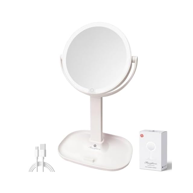 Fiorifiore 卓上ミラー 女優ミラー 両面鏡(等倍+10倍拡大鏡)3色ライト付きミラー 明るさ調節 高さ調整 360度回転 2000mAh大容量 USB充電式 鏡 卓上 化粧鏡 寝室洗面所最適 プレゼントに人気
