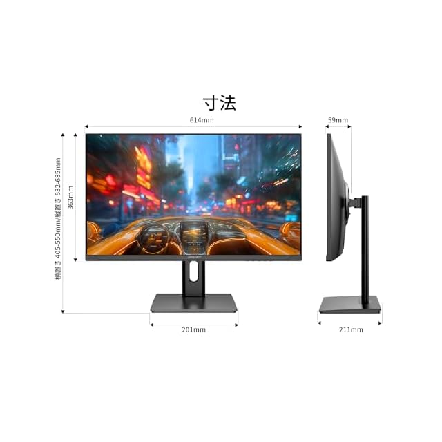 高さ調整が可能な昇降式多機能スタンドを搭載、最大145mmの範囲(横置時)で最適な高さに画面を調整可能です。また、縦画面として使用出来るピボット(回転)機能にも対応します。スイーベル(首振り)機能は、左右各30°の範囲で動かせます。75x75mmのVESAマウントに対応しているので別売のモニターアームやモニタースタンドなどへの取り付けが可能です。2Wx2のスピーカーを搭載します。本製品には、2年間のメーカーが付きます。