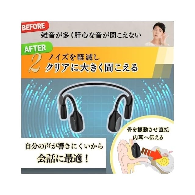 ✅ポイント2:クリアで大きい!雑音軽減機能だからノイズが少ない!骨伝導だから自分の声だけが大きくなることがなく、周囲の音が大きく聞こえて会話を楽しめます。