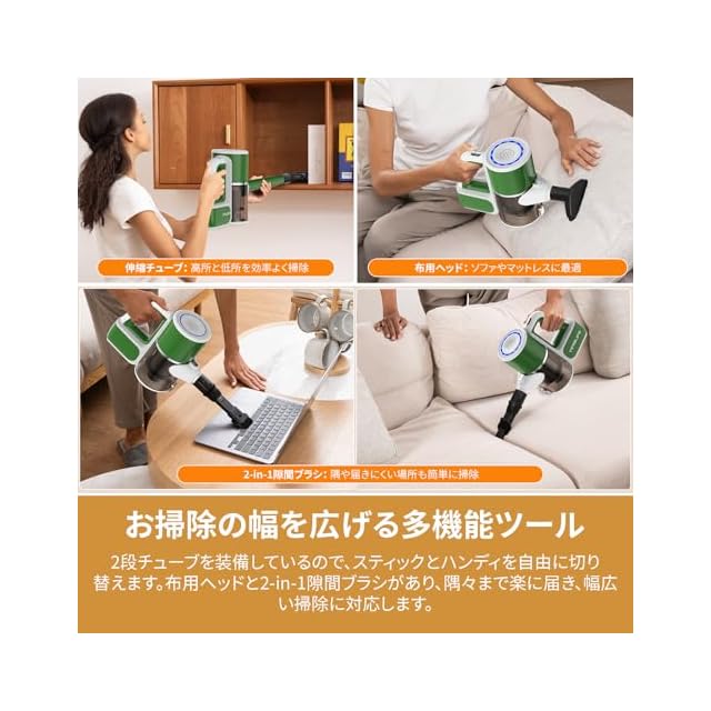 商品名:掃除機 コードレス 38000pa『2025新設計&超軽量』 サイクロン VersLife S6 コードレス掃除機 ブラシレス吸引口 スティッククリーナー 2WAY仕様 延長パイプ 多機能 多種類ノズル ハンディクリーナー Type-C充電式 HEPAフィルター 多重濾過 回転ヘッド フローリング/畳/ソファー/車用 PSE認証済 (グリーン)