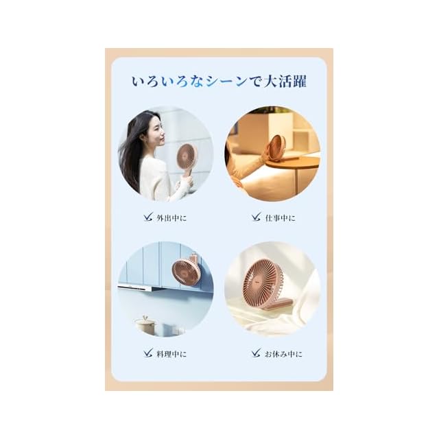 【4段風速調節の強力 ハンディファン】NISSYOの最新携帯扇風機は、弱風から強風まで4段階の風速調節が可能で、デスクワーク中はソフトな風量、リビングではパワフルな風量と使い分け自由。25dBの超静音モードは図書館レベルの静けさを実現し、就寝時や集中作業時にも邪魔になりません。さらに、弊社は5枚ブレードの手持ち扇風機は特殊形状が乱気流を抑制し、肌に優しいなめらかな風を提供します。