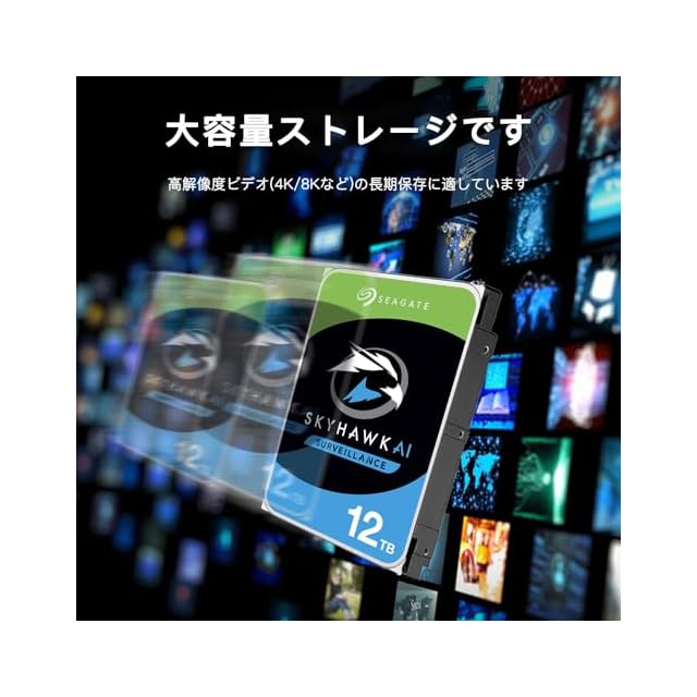 【整備済み品】 シーゲイト SkyHawk AI 12TB hdd内蔵,3.5インチ 監視用ハードディスク 2年,7200rpm SATA 6Gb/s 256MB 24時間稼動 NAS ネットワーク 監視カメラ ビデオレコーダ