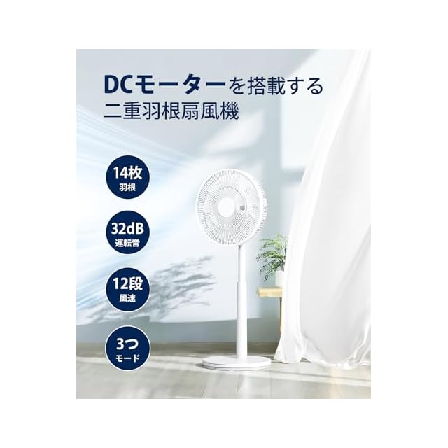 商品名:Joy Pebble 扇風機 14枚羽 ソフト気流 首振り 風量12段階 静音 DCモーター リビング扇風機 3つのモード 14枚羽根 うちわ風 首振り リビング サーキュレーター 高さ調節可能 微風 強風 パワフル送風 睡眠モード 静音 最小32dB 小型 軽量 おしゃれ 空気循環/部屋干し 梅雨 除湿 衣類乾燥 熱中症対策 省エネ リモコン付 タイマー付 換気 節電対策