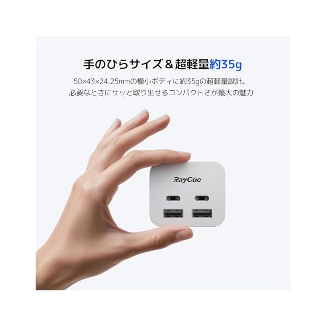 【手のひらサイズ&超軽量約35g】 50×43×24mmの極小ボディに約50gの超軽量設計。ポケットや小型バッグにもすっきり収まるので、出張やカフェ作業時の持ち運びもラクラク。必要なときにサッと取り出せるコンパクトさが最大の魅力です。
