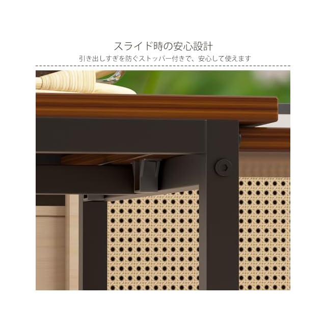 【オペレーション機能】付属の伸縮式天板は長さ60cmで幅80cmから最大140cmまで滑らかに無段階調整可能で、突然の来客や家族が集まる場合にも便利です。必要に応じてテーブルを長くしてパーティーや料理作り時の食材置きなどに活用でき、臨時的なおもてなしにも最適です。