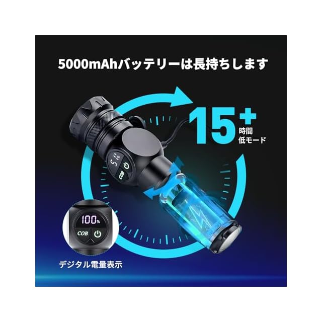 【大容量充電バッテリー & 超高解像度液晶ディスプレイ & Type-C双方向充電式懐中電灯】全新アップグレードの5000mAh高密度環境保護リチウムバッテリーは、超長時間持続モードで連続照明を15時間(低輝度モード)実現します。特に精密な液晶デジタル電量表示機能を備えており、リアルタイムで電量を監視できます。さらに、Type-A逆充電技術を搭載しており、緊急時にスマートフォンの緊急充電が可能で、災害用品の必需品です。