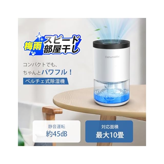 【強力除湿!結露/カビ/梅雨/家の湿気対策】1000ML大容量除湿機はペルチェ技術を採用しており、ペルチェ素子によって湿気を含んだ空気を冷却し、結露させて水滴にする仕組みになっています。1000ML大容量透明タンクで毎回の除湿量が一目瞭然! 除湿器は1日450mlの水が除湿でき(30℃、80%RHの環境条件)、高湿度の梅雨や夏の時に大活躍してくれます。湿気によるカビ臭や窓際の結露を予防することができ、これからジメジメした季節も爽やかな気分で乗り切れます。