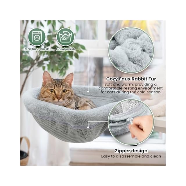 【ファスナーデザイン&フェイクラビットファー素材】猫用家具はファスナーによって各部が接続されていて、取り付けと分解掃除が簡単です。生地は肌触りの良いフェイクラビットファー素材を採用し、柔らかくて暖かく、寒い季節に猫に快適な休眠環境を用意します。