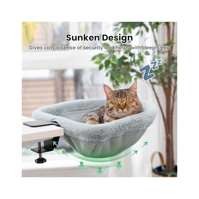 JUNSPOW 猫用デスクベッド ワンクリック折り畳み、陥没デザイン & 場所を取らない 半円形の猫用ベッド、柔らかいラビットファー素材、様々なデスクトップに対応-最大40ポンドまで保持可能