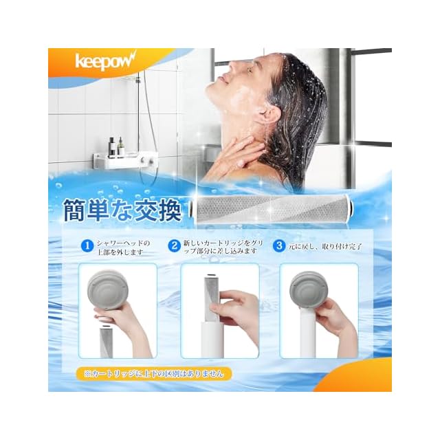 浄水性能:水道水中の残留塩素を効果的に除去し、髪や肌へのダメージを軽減します。キューティクルやタンパク質の酸化・分解を防ぎ、髪や肌をやさしく守ります。