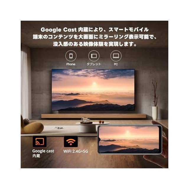 Google cast内蔵で簡単キャスト - スマホやタブレットの写真・動画・音楽をテレビにワンタッチで映せる。週末のリラックスタイムがもっと楽しく。