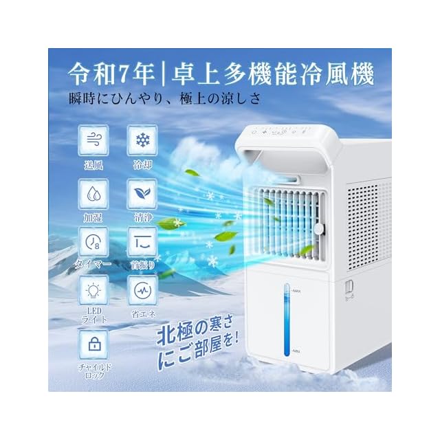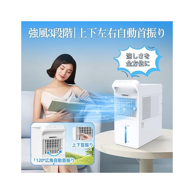 【ツインターボ搭載、最大7.5m/sの強力送風】卓上クーラーの常識を超える、パワフルな涼しさを。この冷風扇は、独自のダブルターボファン構造で、7.5m/sの力強い風を生み出します。小型ながら驚くほどの風量で、扇風機や一般的な冷風機では物足りなかった空間にも、しっかり冷風を届けます。3段階風量で微風から強風まで自在に切り替え可能。暑さ対策はもちろん、デスク、寝室、リビングなど、シーンを問わず快適な涼しさをプラスします。