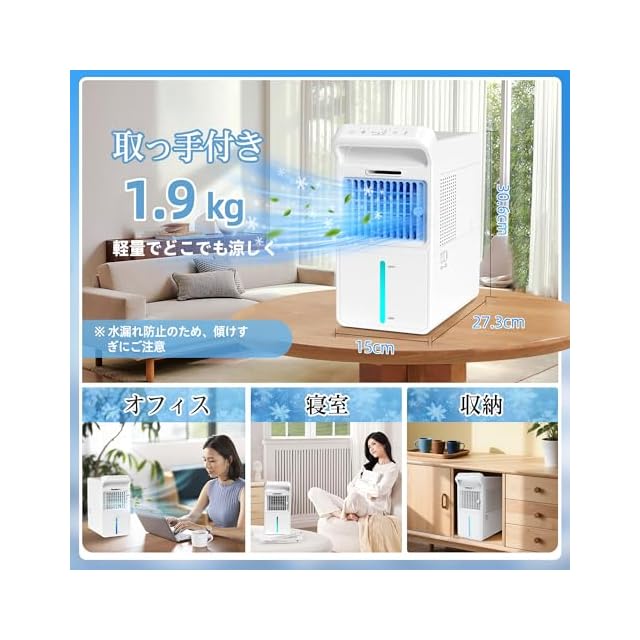 【省エネ33W&1.9kg軽量、小型でも頼れる涼しさ】暑さ対策はしたいけど、電気代や置き場所が気になる…そんな悩みに応えるのがBravebyの小型扇風機。消費電力はわずか33W、長時間使っても家計にやさしい省エネ設計。さらに、1.9kgの軽量ボディ&上部ハンドル付きで、設置や持ち運びもスムーズ。使わない時はちょっとした隙間にも収納できるスリム設計。 ※安定した平面でご使用ください。使用中の移動や水タンクを持ち上げると水漏れの原因となります。