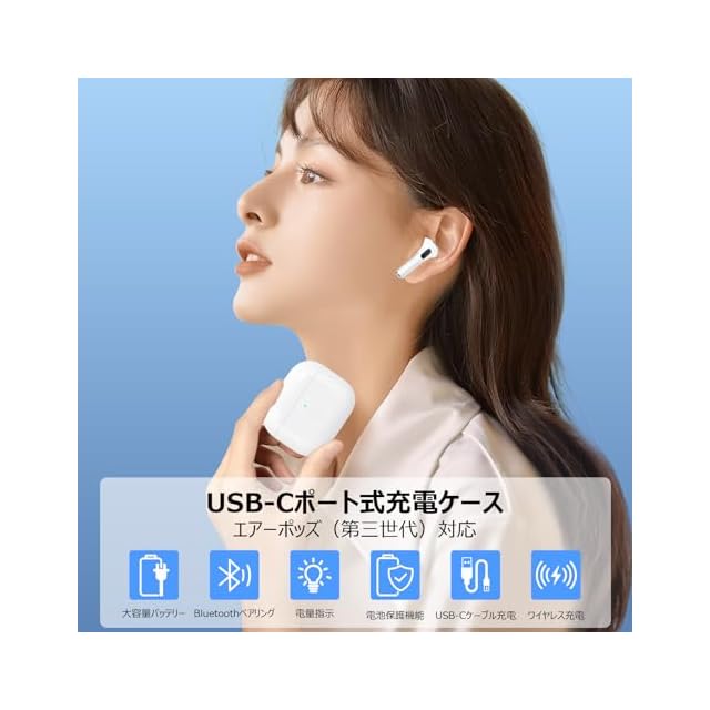 【AirPods 3用ケース】AirPods第3世代交換用タイプcポートの充電ケースです。オリジナルの充電ケースが紛失または破損した場合、予備の充電ケースとして使用できます。接続が安定し、同期速度が早い最優の代替ケースです。ご注意:本製品は純正品かつ「元のセット」のAirPods 第3世代イヤホンのみ対応します。
