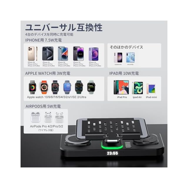 ワイヤレス充電器、ipad用充電スタンド、充電スタンド、充電ステーション、充電ドック、iphone apple watch 充電スタンド、タブレット 充電スタンド、複数のデバイス同時充電可能