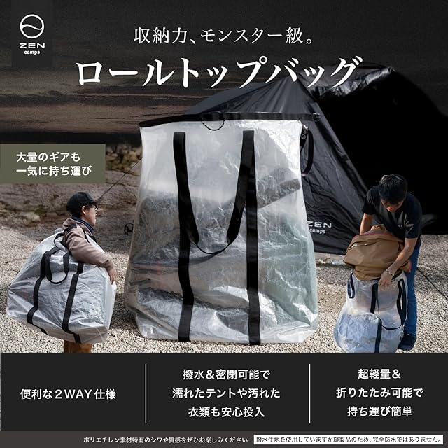 商品名:ZEN Camps ロールトップバッグ 特大 252L 収納 袋 防水 キャンプ テント タープ 折りたたみ ドライバッグ 密閉