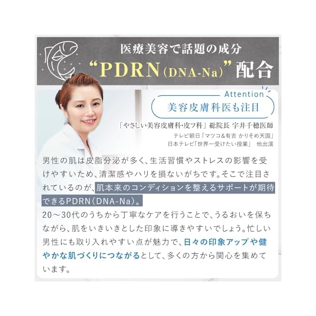 エイジングケア成分PDRN(DNA-Na)配合 ※鮭のDNA由来のPDRN(保湿成分)を配合。肌にうるおいを与え、なめらかでツヤのある印象へ導きます。毎日のスキンケアに取り入れて、健やかな肌をキープ。
