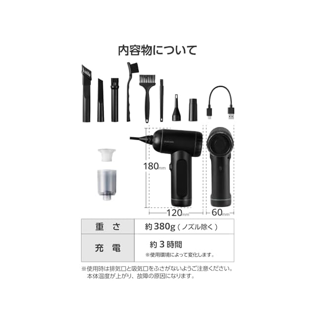 商品名:エレコム 電動エアダスター ブロワー 2WAY 吹き飛ぶ/吸い込む 強力 充電式 3段階風量調整 軽量 LEDライト付き ブラック ADWALCC01BK