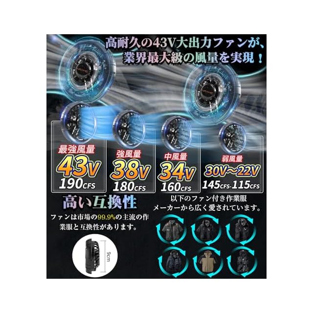 【2025年注目作】43V超高出力 ファンバッテリーセット 空調作業服用ファンバッテリーセット(搭載EVEエナジー製高い安全性21700型電池)建築業 製造業 工場 農作業 設備業 釣り 熱中症対策 その他各種作業服対応 [日本正規品]