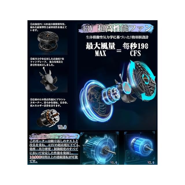 商品名:【2025年注目作】43V超高出力 ファンバッテリーセット 空調作業服用ファンバッテリーセット(搭載EVEエナジー製高い安全性21700型電池)建築業 製造業 工場 農作業 設備業 釣り 熱中症対策 その他各種作業服対応 [日本正規品]