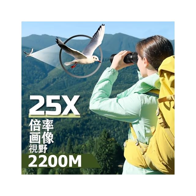 1.【25X60双眼鏡】 25X60双眼鏡は60mmレンズを採用し、色の歪みやぼやけがなく、細部まで鮮明にとらえます。 倍率は25倍で、2200メートルの視野を持ち、臨場感あふれる体験ができます。