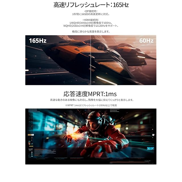 商品名:JAPANNEXT 34インチ IPSパネル搭載 165Hz対応 UWQHD(3440x1440)解像度 ウルトラワイドゲーミングモニター JN-IPS34G165UQ-HS HDMI DP HDR 1ms(MPRT) アスペクト比21:9 高さ調整 PBP/PIP 【2年】