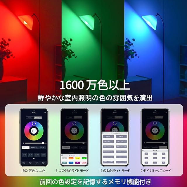 商品名:JOYIDEAVA LEDフロアランプ、リモコンとアプリコントロール付き、無段階RGB調整可能1600万色、ダイナミックライト、タイマー設定、シンプルでモダンなデザインのフロアランプ、ランプシェード付き、リビングルーム、寝室、オフィス、ダイニングルーム用の背の高いスタンドランプ、9W電球付属 (黒)