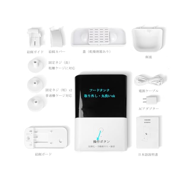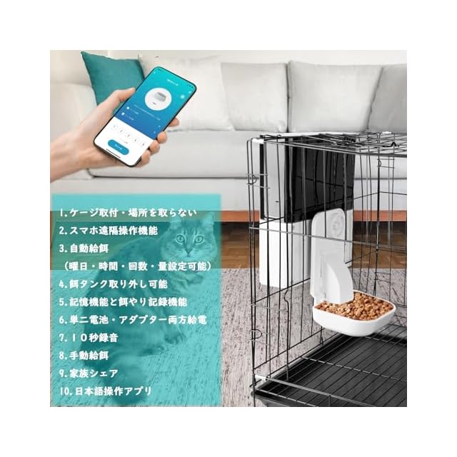 餌タンク容量 2.3L <br>操作方法 スマホアプリでこの給餌器を遠隔コントロールします。 <br>特徴 ケージに取付タイプ