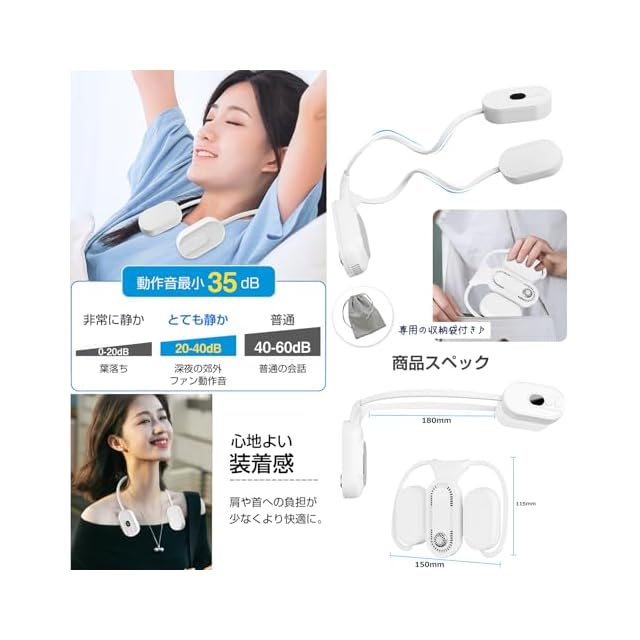 【コンパクトで軽量】このネッククーラーはコンパクトで、重量はわずか215グラムしかなく、長時間装着してもストレスを感じることはありません。このファンは折りたたみ式の設計を採用しているため、収納が簡単で、旅行や出張にも持ち運びやすいです。
