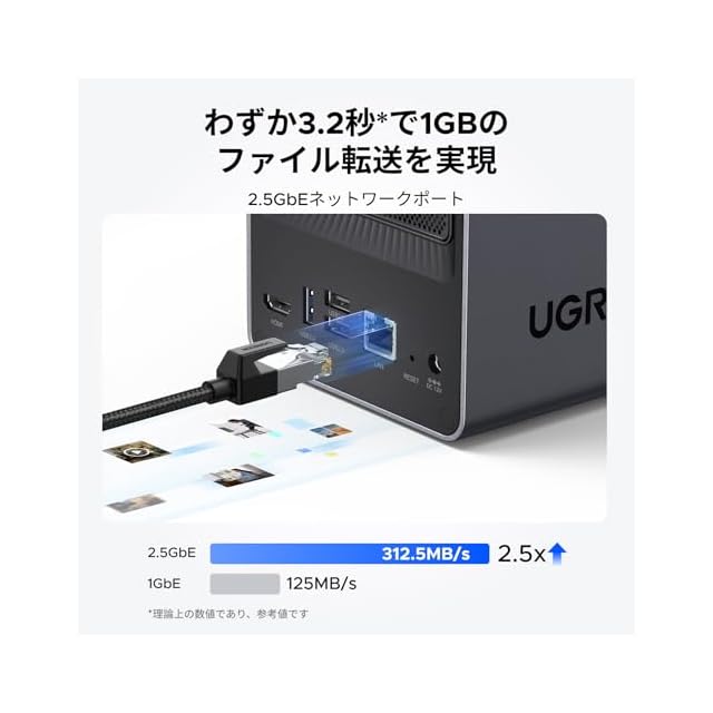業界トップクラスの性能:第12世代Intel N100プロセッサー & 2.5GbEネットワークポート搭載。複数アプリの同時動作も快適で、1GBファイルをわずか3秒で転送可能。