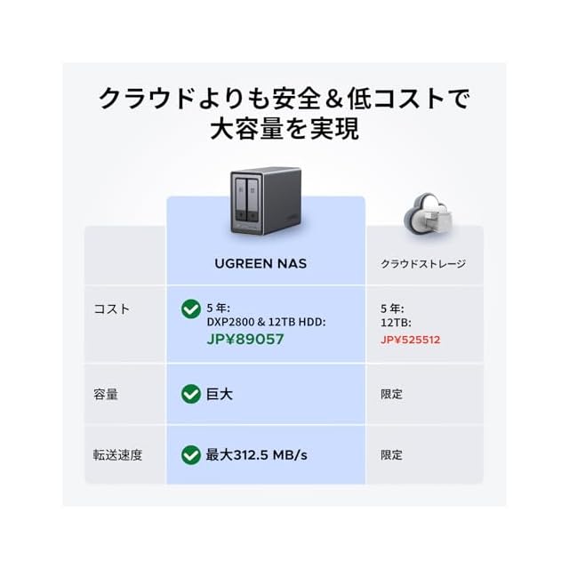 費用削減、容量拡大:高額なクラウドストレージの月額料金とは異なり、NASは初期購入費のみで追加費用不要。長期的に圧倒的なコストメリットを実現します。また、データをローカルに保存することでセキュリティも強化し、完全な管理権限を保持できます。