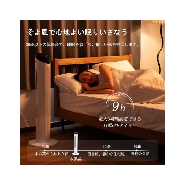 【左右自動首振り&リモコン操作】羽根なし 扇風機 は左右自動首振り機能でより広範囲に送風できるので、お好みの角度や風量に調整し、涼しく気持ちいい風が楽しめます。20畳の部屋に対応します。タワーファンは、読み取りやすく直感的な前方LEDタッチパネルを装備しており、操作性が優れます。見やすいタッチパネルを採用しているほか、リモコンで遠距離操作も可能で、リラックスタイムもゆったり楽しめます、日々の生活が快適になります。