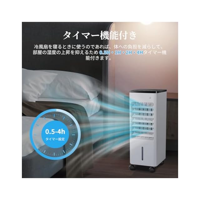 「タイマー機能搭載・省エネで経済的な冷風機」当店の冷風機 強力 人気はタッチパネル式操作で直感的に使え、付属リモコンによりソファやベッドに寝たままでも快適に調整可能。体調不良時など移動が難しい時にも便利です。0.5~4時間の範囲で設定可能な自動オフタイマー機能で、就寝時の冷えすぎ防止と節電を両立。エアコンと比べて格段に電気代が抑えられるため、夏の電力消費が気になる方にもおすすめの高機能冷風扇です。