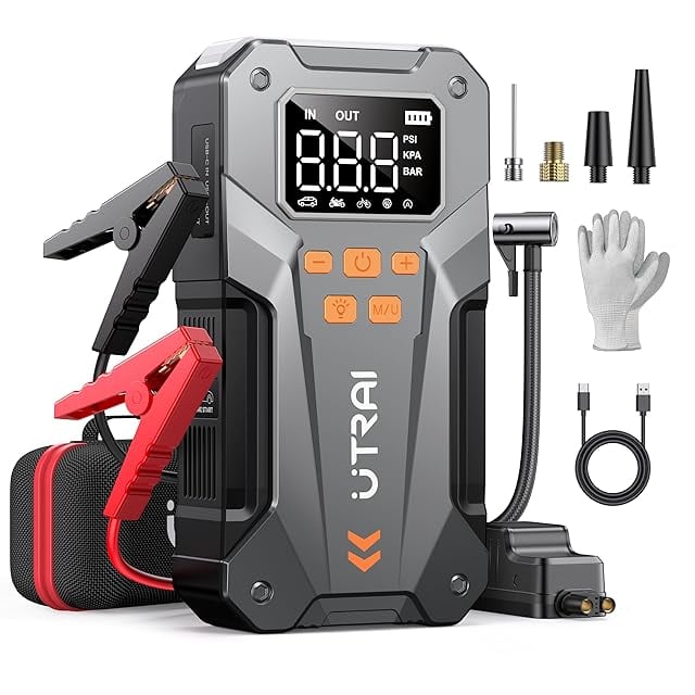 UTRAI ジャンプスターター & 空気入れ 5000A 12V スタータージャンプ 150PSIエアコンプレッサー搭載 自転車/バイク/車対応 モバイルバッテリー機能 LEDライト USB急速充電 PSE認証済 JS-20