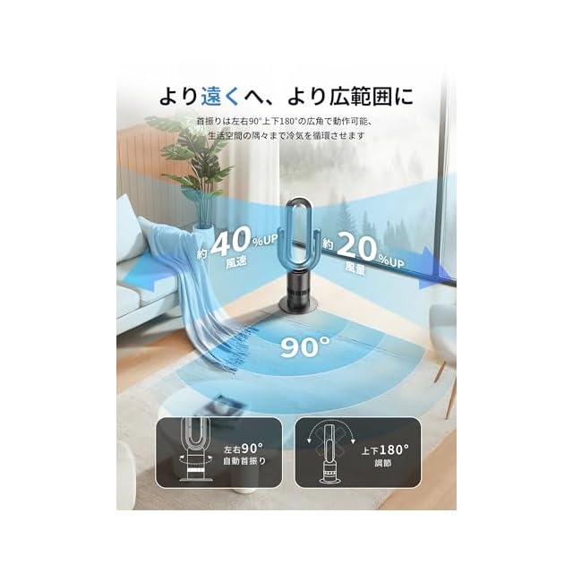 商品名:【節電対策】タワーファン 扇風機 羽なし 冷風 温風 強力 DCモーター13段階切り替え 90°自動首振り 上下風向き180°調整可 空気循環 9Hタイマー 静音 省エネ 安全機能搭載 スリムファン リビング/冷暖房/脱衣所適用 羽なし扇風機 冷風機 PSE認証済み リモコン付き Q8-Pro