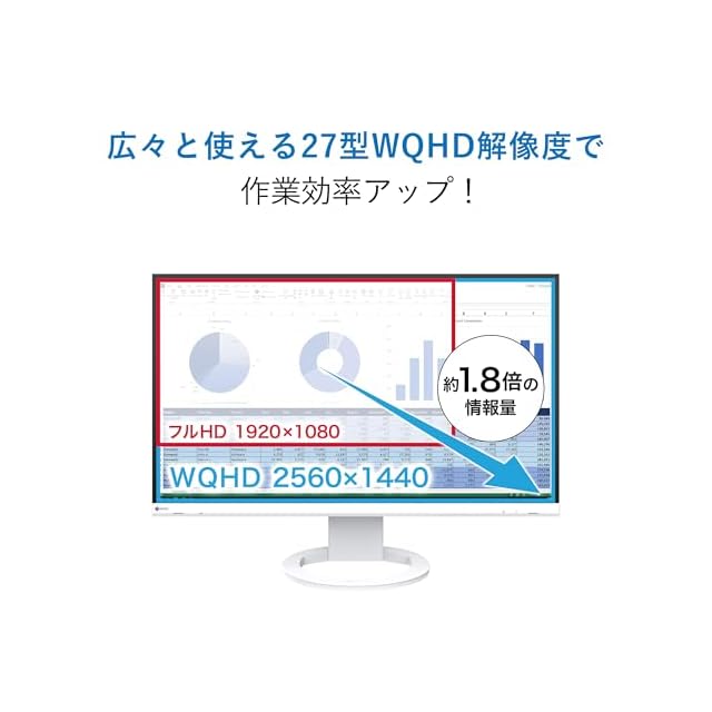 27.0型WQHD(2560×1440)IPSパネル搭載、フルHDの約1.8倍の情報量を表示可能
