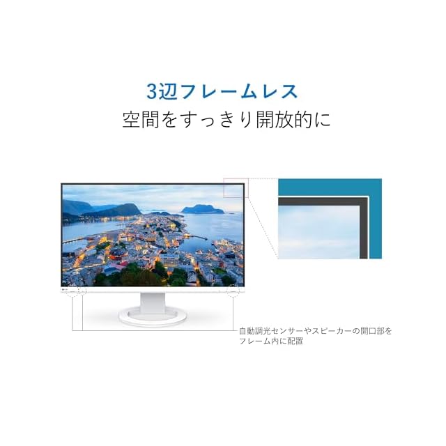3辺フレームレスデザイン、省スペース設計でコンパクトなデスクにも設置が容易