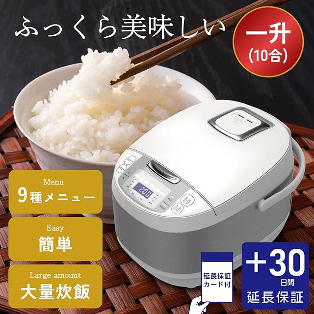 商品名:【プラス30日延長】Modere 多機能炊飯器 一升 マイコン式 一升炊き 10合 9種のメニュー スチーム皿付属 簡単 シンプル 美味しい モード 蒸し料理 白米 玄米 無洗米 おかゆ 炊き込みご飯 炊飯ジャー 野菜 蒸し鶏 ささみ 大家族 飲食店 大量 ホワイト