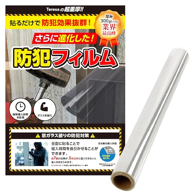 激厚300ミクロン(12mil) 元警察官監修 飛散防止 防犯対策 ガラスフィルム 窓ガラス 防犯シート Teresa(152×100)
