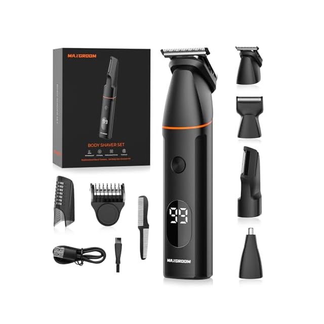 商品名:ボディシェーバー メンズ vio 電動シェーバー 電気 USB 充電式 全身 ボディ トリマー 4in1 自動研磨 IPX6防水 お風呂剃り可 LEDディスプレイ 男性用 電動バリカン 水洗い可 安全ロック機能 使用可1-9mmの付属コーム付き 軽量 プレゼント
