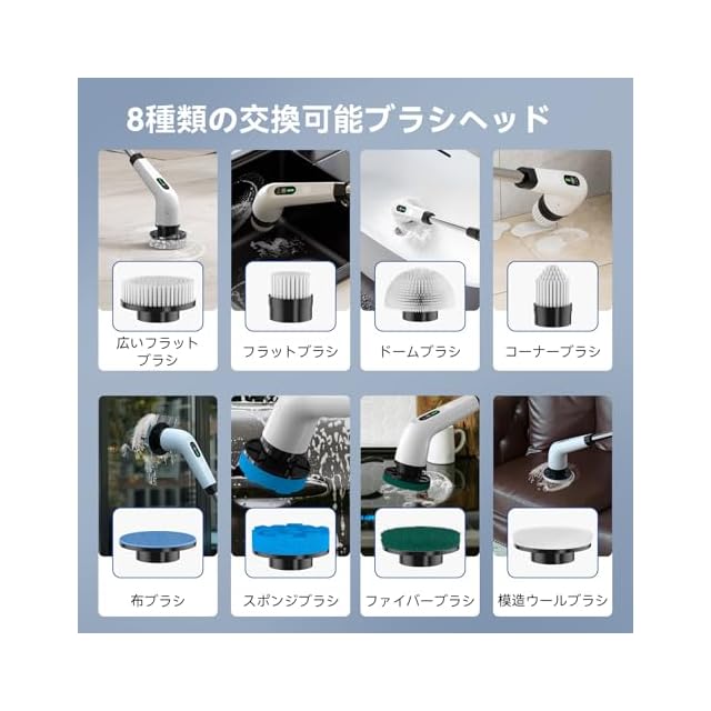 商品名:【2025新登場11in1・電量表示】Mesqool お風呂掃除ブラシ バスポリッシャー コードレス 電動お掃除ブラシ デッキブラシ 8つ替えブラシ付き ポリッシャー 軽量 280/380/480RPM三つ回転速度選択可 120分間連続使用 風呂 浴室 浴槽磨き トイレ掃除 床 窓 壁 玄関 車 年末掃除 収納袋付き 日本語説明書 プレゼント (ホワイト)