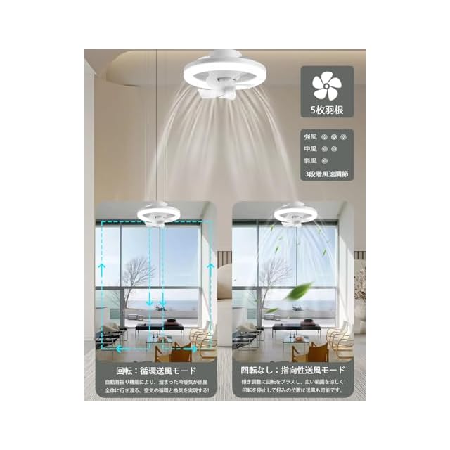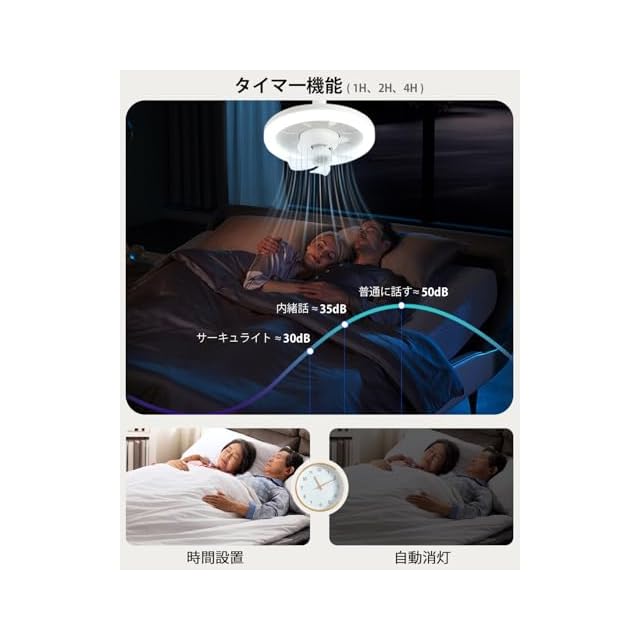 商品名:シーリングファンライト 天井ライト 扇風機 360°回転 無階段調光/調色/風量3階段調整 タイマー機能 ファン13.5W LED60W 10畳 2500lm E26口金 リモコン付き 工事不要 簡単取り付け 省エネ ホワイト