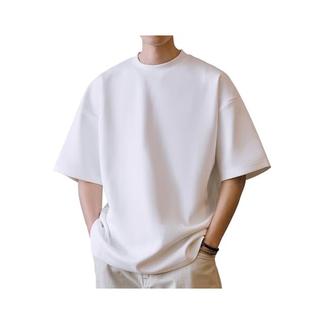 [CHANGE WELL] メンズ「2024 SS」ファッション 春夏服 9オンス エアレイヤー (半袖) スウェット 厚手 ストレッチ ビッグシルエット Tシャツカットソー (ホワイト, L)