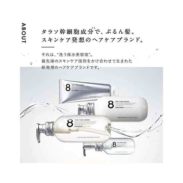 【関連ワード】 エイト ザ タラソ 8 THE THALASSO ヘアケア スタイリング シャンプー コンディショナー ヘアパック トリートメント くせ毛 エイジングケア クレンジング ノンシリコン サルフェートフリー パラペンフリー 無鉱物油 合成着色料不使用 石油系界面活性剤フリー 生ケラチン 美容室専売 サロン専売品 クオリティ 地肌ケア スカルプ レディース メンズ 男性 にも