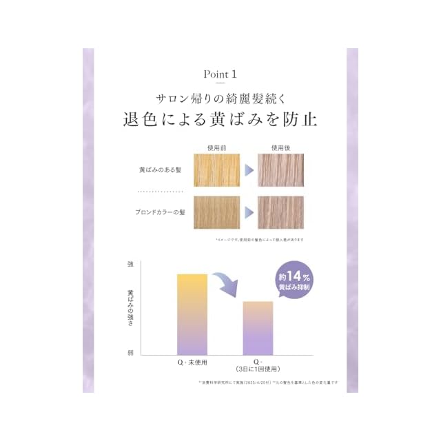 ✨【 サロン仕立ての髪色、そのままに。 】「カラーキープ×ダメージケア」を叶え、ツヤ感溢れるまとまり髪へ Q+( クオリタス ) のカラーシャンプー(紫)|●明るめのアッシュ ●黄ばみやすい金髪 の髪色にオススメ
