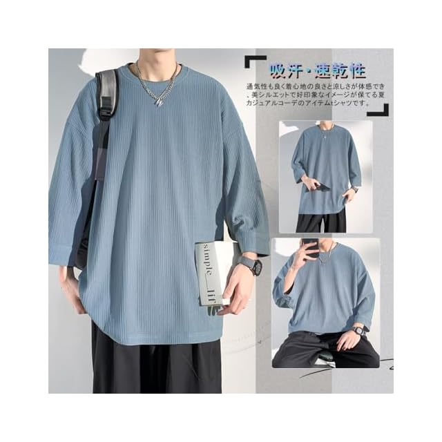 [BesBet] 七分袖 Tシャツ メンズ 夏服 メンズ おしゃれ トップス 人気 無地 大きいサイズ シンプル オシャレ ゆったり 柔らかい肌触り 涼しい 快適 ファッション ビッグ シルエット かっこいい 春夏秋