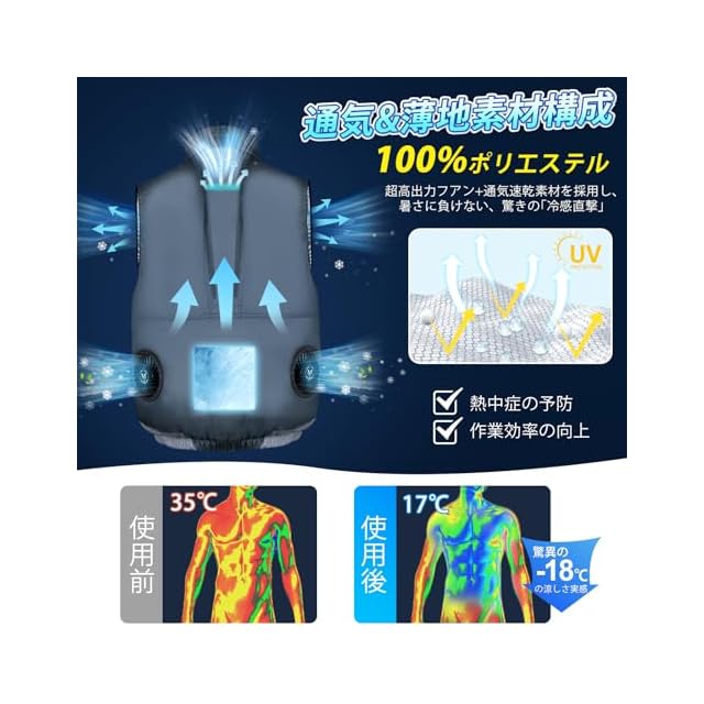 商品名:[Innzee] 【 業界NO.1の無敵風量&航続時間 12枚羽根 最大52H速続使用 体感-18℃】空調作業服 ファンバッテリーセット 6段階風量調節 3D循環送風 UVカット ファン付きベスト 超高出力 涼感 冷却服 軽量 通気 撥水加工 熱中症予防 猛暑対策 洗濯可能 屋外作業/在宅/通勤 着脱式ぼうし&大容量バッテリー付属空調ウェア 男女兼用 PSE認証済 (XL)