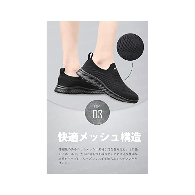 ✅【快適メッシュ構造】通気性を確保することでより快適な状態をキープするスリッポンならウォーキングシューズやカジュアルシューズとしても履ける万能シューズです